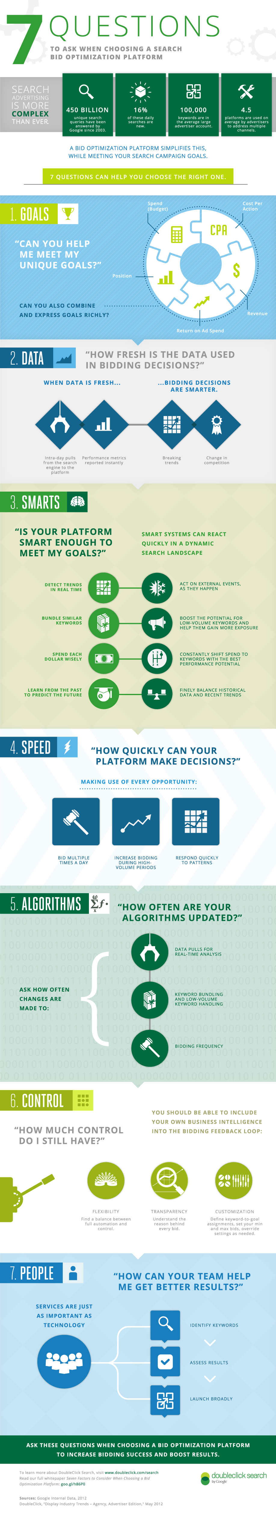 Within this blog series, we’ve delved into the key factors to consider when evaluating a search bid optimization platform, including flexible expression of goals, fresh data, smart algorithms, fast operations, regular software updates, sufficient controls, and dedicated, consultative services. As a wrap up to our bid optimization series, we want to recap the importance of these factors with an infographic:
